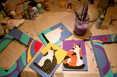 I finished a few more cat paintings.